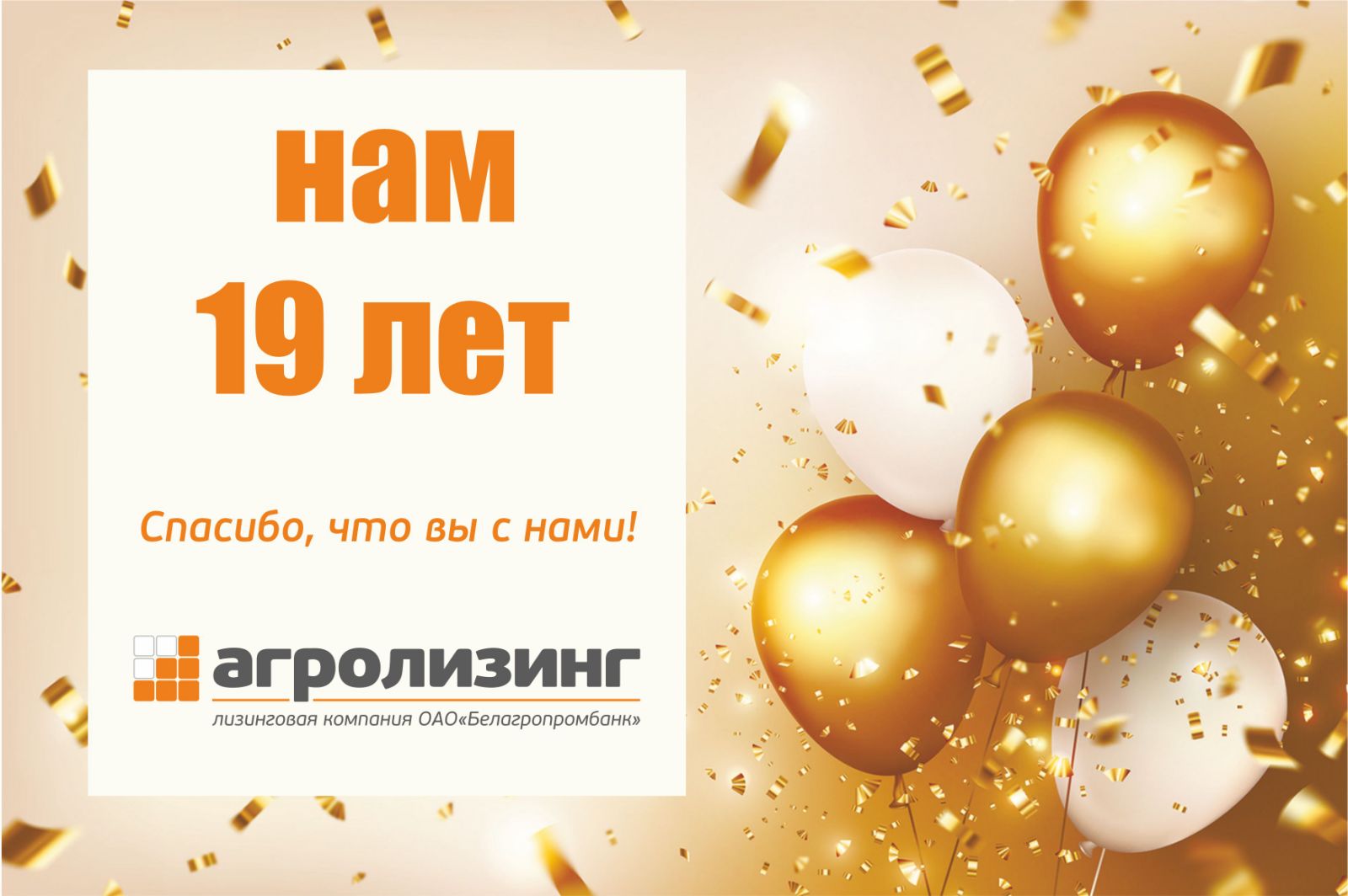 20 июля ОАО «Агролизинг» отмечает знаменательную дату – 19 лет!