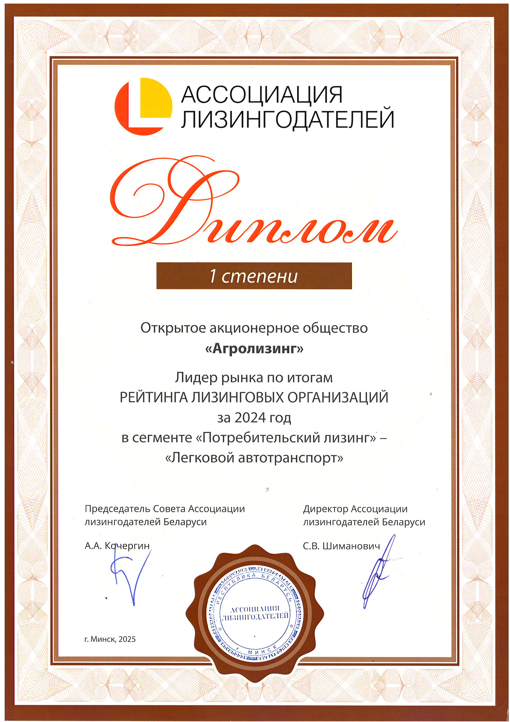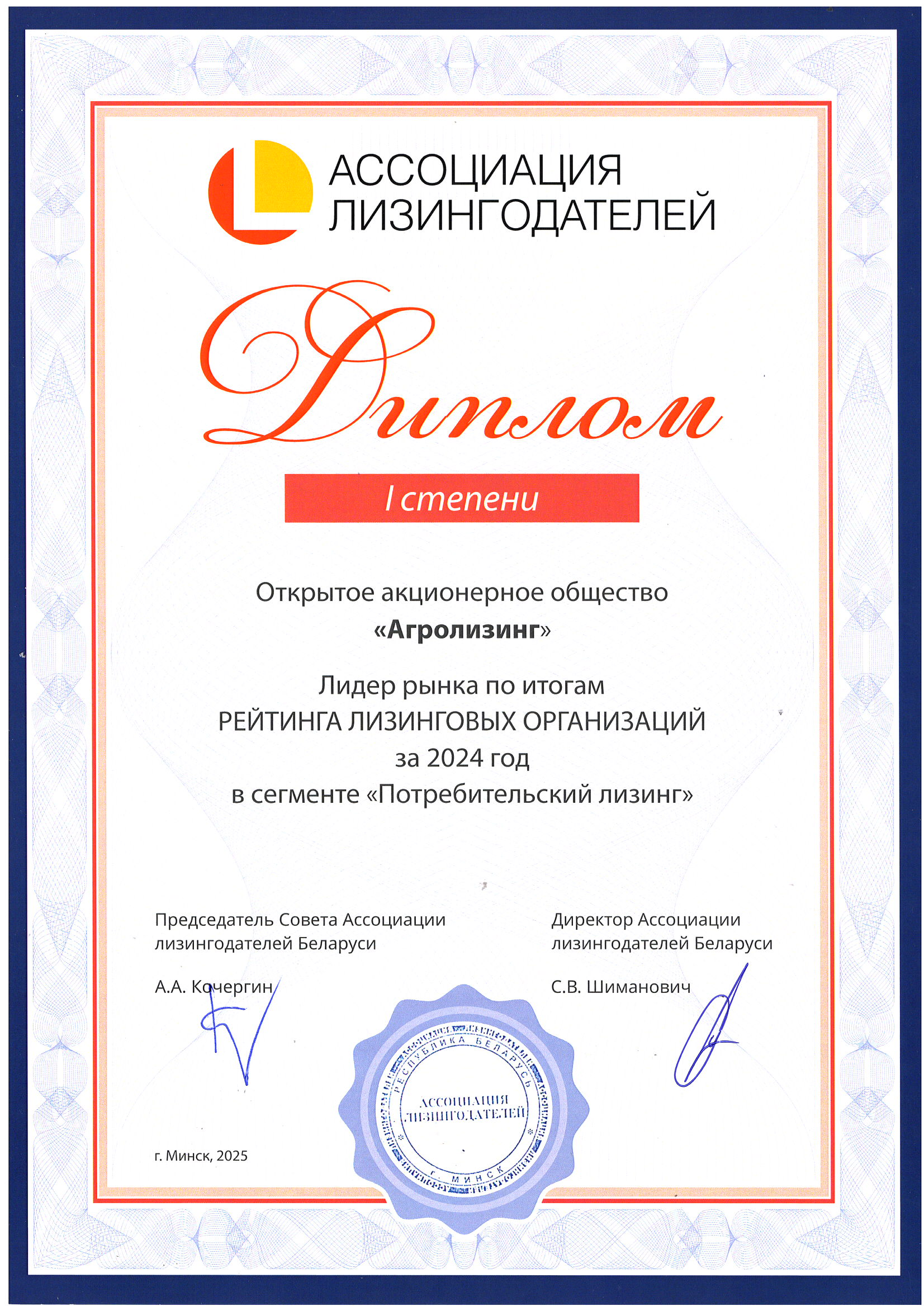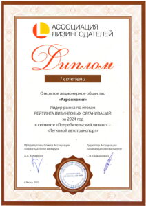 Ассоциацией лизингодателей Республики Беларусь 10 апреля 2025 года подведены итоги работы лизинговой отрасли Республики Беларусь и оглашен рейтинг лизинговых компаний за 2024 год.
